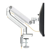 Turn clockwise to increase gas spring tension till it can hold the weight of your monitor.Note: Both elbow joints of the upper arm need adjustment , and you may need to turn the screw by many circles to tighten the arm.