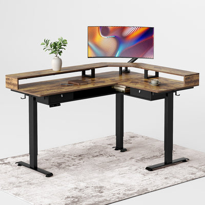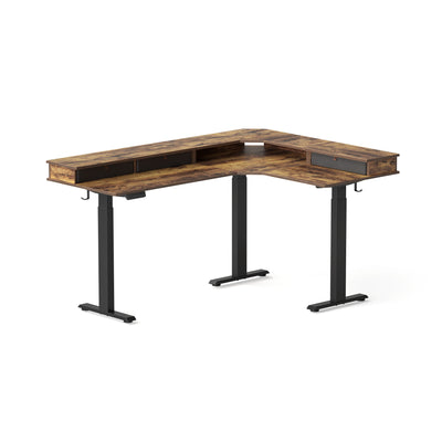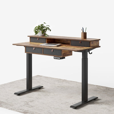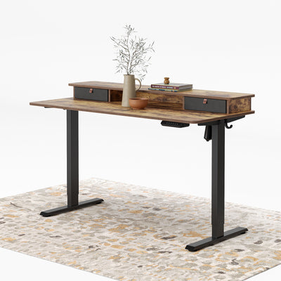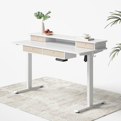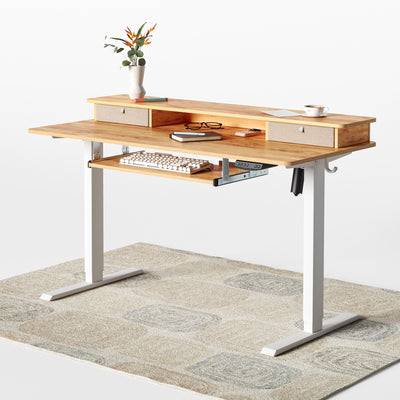 Electric Standing Desk with Glass Top Double Drawer - Desktop